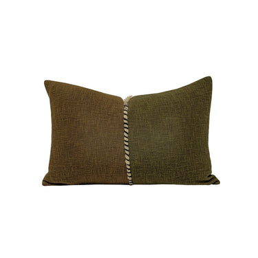 El cojín decorativo de algodón flameado bicolor que combina el color marrón y el caqui combina la naturalidad de sus materiales con un diseño artesanal y versátil que se adapta a cualquier espacio.