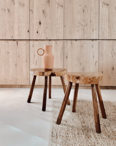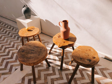 Te presentamos nuestros taburetes rústicos de madera de castaño, fabricados de forma artesanal en el Bierzo. Estas piezas únicas reflejan la esencia de la artesanía popular española, combinando la robustez de la madera maciza con un diseño brutalista que aporta carácter y autenticidad a cualquier espacio.
