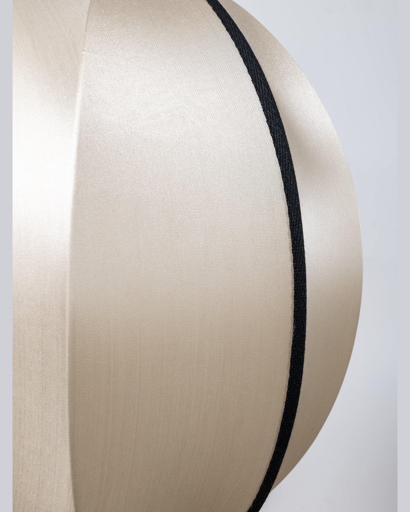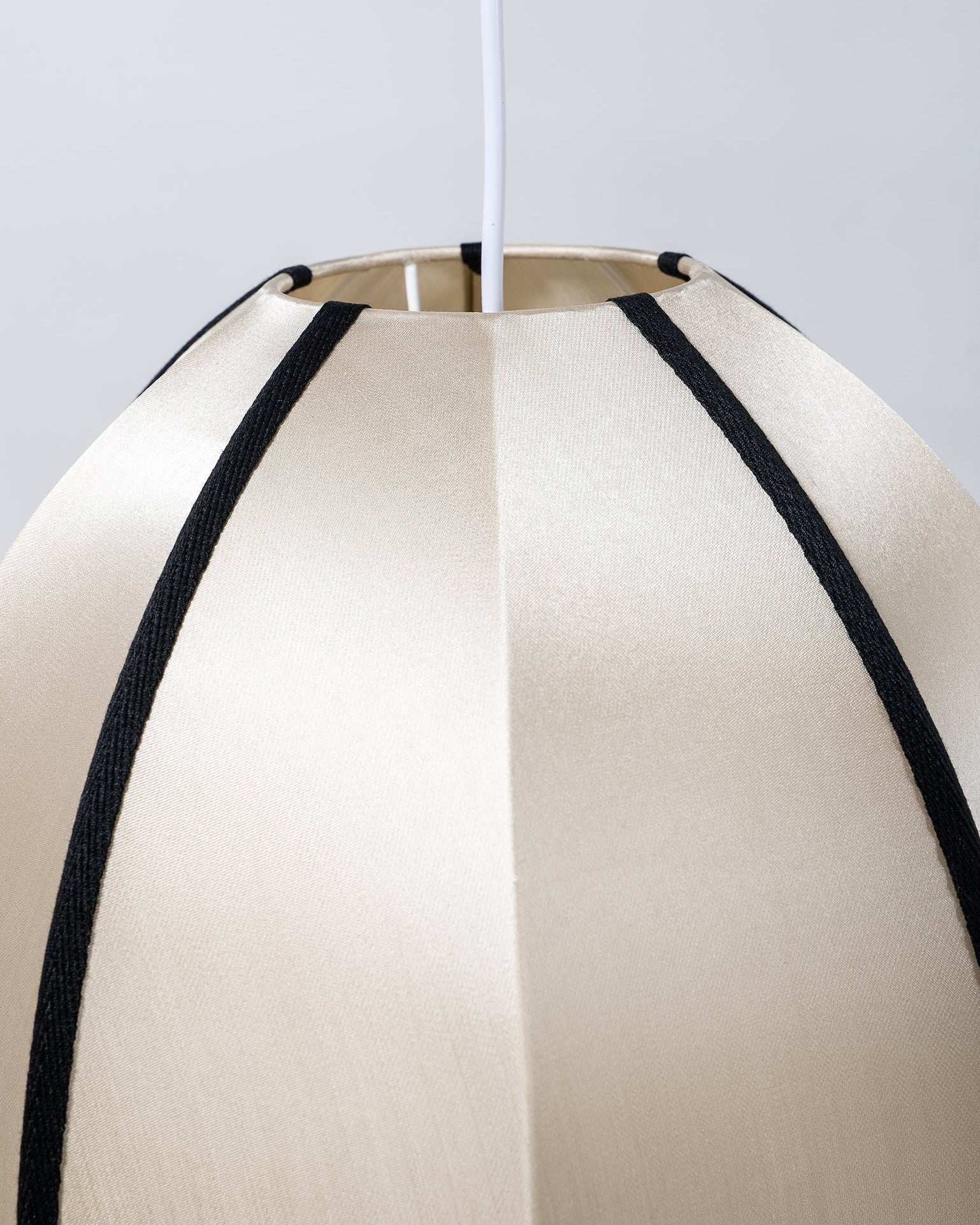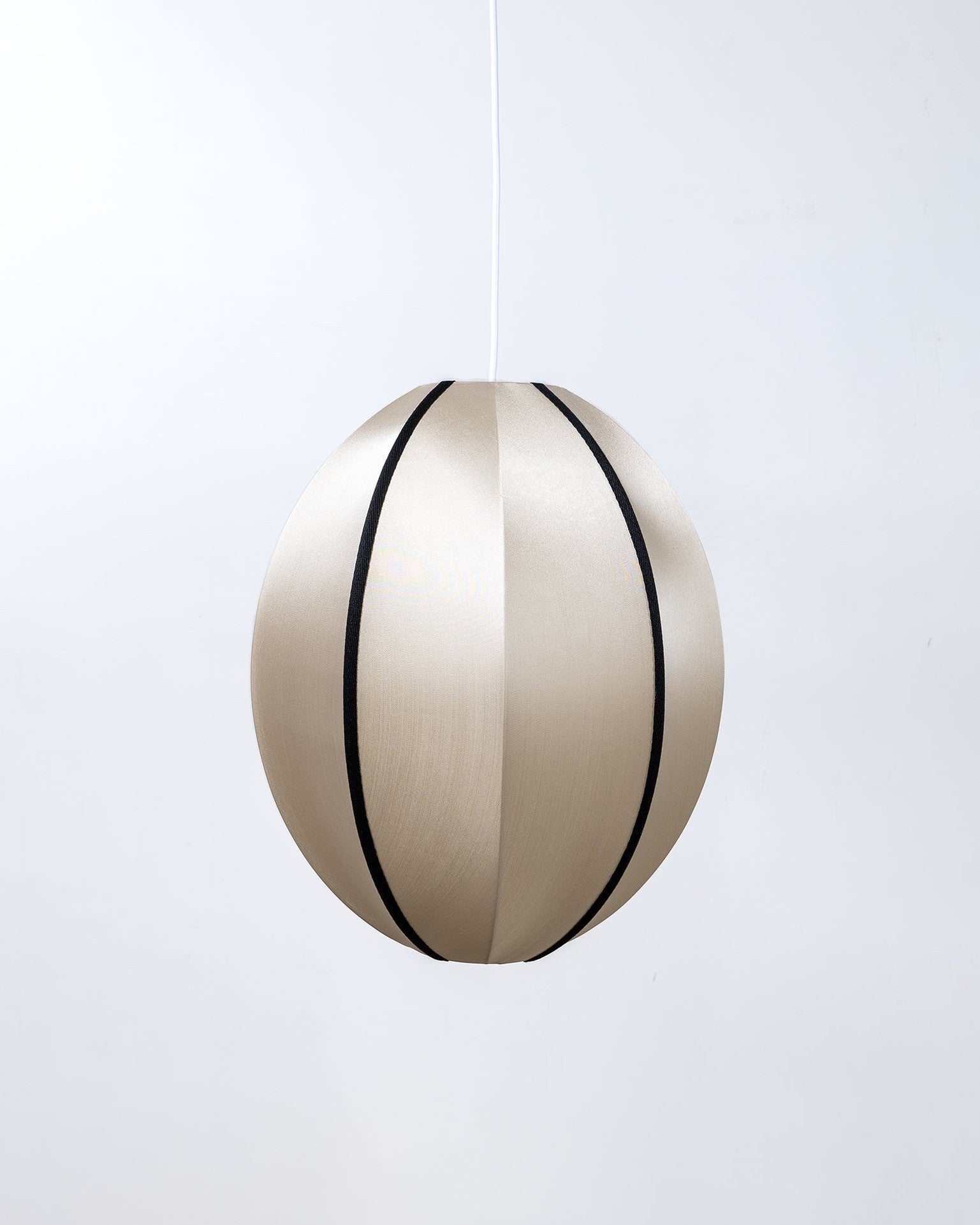 Esta pantalla de lámpara de techo oval   disponible en dos tamaños combina elegancia escandinava y funcionalidad, aportando un ambiente cálido y sofisticado a cualquier espacio. Confeccionada en seda natural de brillo sutil, difunde la luz de forma suave y uniforme, creando ambientes envolventes y libres de sombras duras.