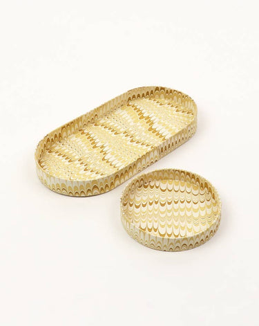 ¿Buscas vaciabolsillos originales que añadan organización y estilo a tu espacio? Descubre nuestro exclusivo set de  dos bandejas pequeñas, diseñado para dar un toque elegante y artesanal a tu hogar o lugar de trabajo. Este set incluye dos dos bandejas en dos tamaños, pequeñas y medianas, cuidadosamente elaboradas a mano mediante la técnica de jaspeado por los talentosos artesanos de Craft Boat.