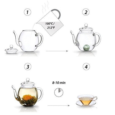 • Rendimiento: Cada una de las 6 bolitas puede ser infusionada  hasta 3 veces, proporcionando un total de al menos 1 litro de té.