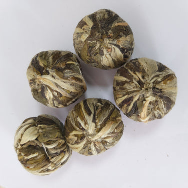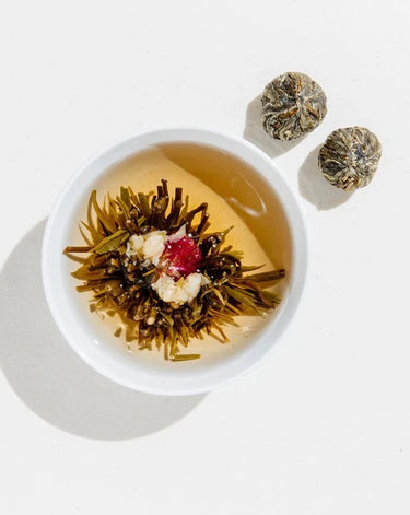 Las 6 bolitas de té floreciente vienen en una bolsa hermética con cierre ziploc para mantener su frescura y aroma.