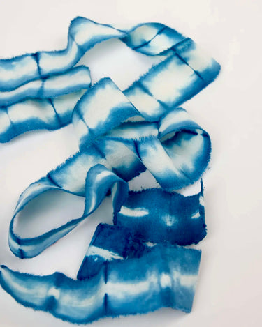 Empaquetado en una bolsa de algodón azul,  en un conjunto de seis cintas decorativas de tela teñidas de forma natural, este producto no solo es hermoso sino también respetuoso con el medio ambiente. Cada cinta está hecha con amor y dedicación por los talentosos artesanos de Craft Boat, garantizando calidad y autenticidad en cada pieza.