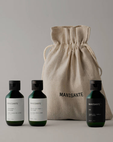 Lleva contigo el lujo y la naturaleza con el Kit de Viaje Manisante. Perfecto para mantener tu rutina de cuidado personal en cualquier lugar o para regalar.