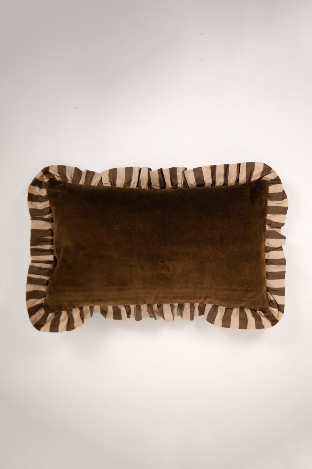 Funda de cojín marrón con volante 30x50