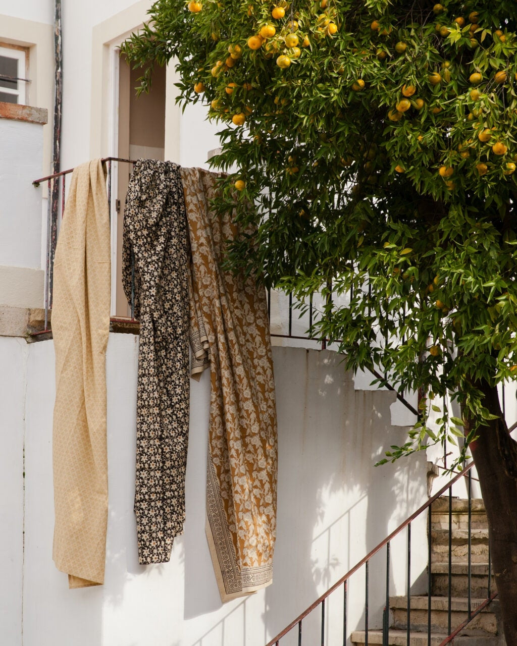 Mantel de 100% algodón con caída natural y tacto suave para mesas de comedor. El motivo se realiza mediante estampado manual con bloque de madera, lo que aporta variaciones únicas en cada pieza. Las dimensiones de 150 x 300 cm cubren mesas rectangulares de 6–8 comensales y crean una atmósfera cálida y acogedora. Requiere cuidados suaves para preservar el color y la textura del tejido.
