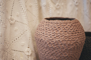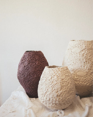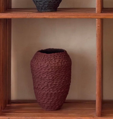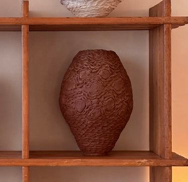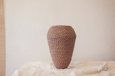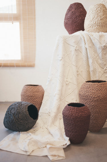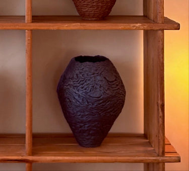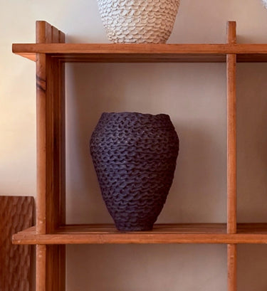 More than just a decorative element, the Crochet vase is a work of art that fuses tradition and contemporary design. Its textured surface adds character and depth, while its dark hue makes it a focal point in any space. Its versatile aesthetic allows it to be integrated into a variety of decorative styles, from minimalist interiors to rustic and eclectic settings. It can stand out as a centerpiece on a table or add a sculptural touch to a console table or shelf.