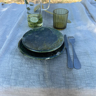 Add a touch of authenticity and artisanal style to your table with this square cotton tablecloth in a cement gray gradient. Made from 100% slub cotton, it stands out for its crinkled effect and distinctive tie-dye pattern, creating a unique piece full of personality. Its versatile design makes it the perfect addition to small tables or as a tablecloth on a larger table.