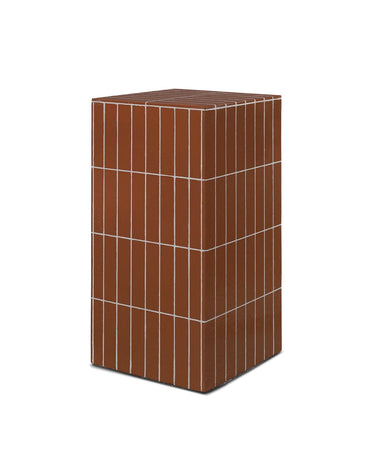 This pedestal is a sturdy and versatile architectural piece, made of fiberglass-reinforced concrete. Its unique design is highlighted by the delicate grooves etched into its surface, creating a pattern reminiscent of tile texture and adding a handcrafted touch to its solid, minimalist appearance.