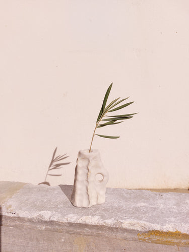 The versatile design of this object allows it to be used both as an elegant candle holder and as a small vase, adapting to different needs and spaces. The softness of white stoneware combined with the refined touch of Limoges porcelain make it an ideal handcrafted piece to bring warmth and harmony to any setting.