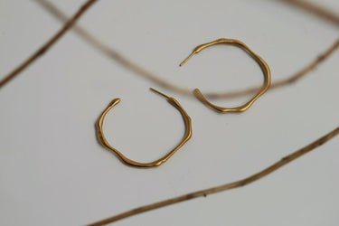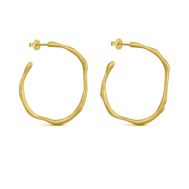 These original matte-finished, circular gold hoops stand out with their irregular surface. Made of brass and measuring 4 cm in diameter, they are an attractive and sophisticated choice for any occasion.
