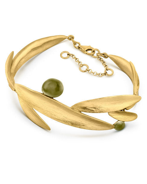 Discover the beauty of Mediterranean nature with Joidart's new collection. Crafted in two exquisite finishes—matte rhodium-plated silver and matte 24K gold-plated metal—these gold-plated bracelets will be an elegant addition to your jewelry collection. Enjoy their unique design inspired by the leaves and fruits of the olive tree, and carry a piece of Mediterranean heritage with you.