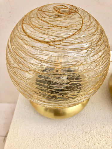 Glass and brass bedside table lamps.