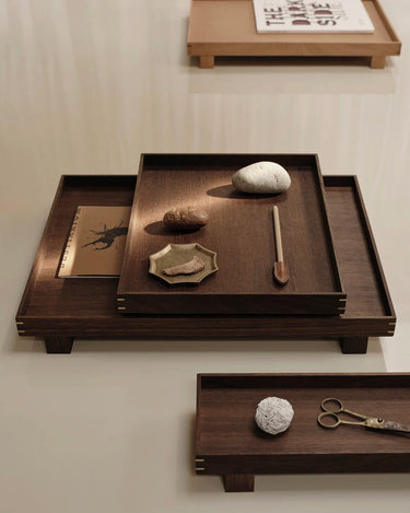 The Bon decorative wooden tray set combines the best of Scandinavian design tradition with Japanese minimalism , offering a fusion of aesthetics and functionality. Available in three sizes, these wooden trays stand out for their clean lines and use of natural materials, making them the perfect addition to any space.