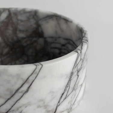 Introducing our exclusive cylindrical marble bowl in various finishes , a handcrafted piece that reflects the artistry and beauty of authentic Turkish marble. This bowl is meticulously handcrafted from a single piece of marble and polished to a silky matte finish that enhances its elegance and sophistication.