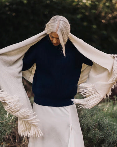 Add a touch of natural elegance to your home with this luxurious natural grey and white alpaca wool throw !