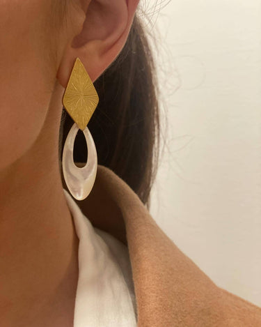 Whether you're choosing a casual or formal outfit, these gold and mother-of-pearl earrings are the perfect complement. Their unique design enhances any look, making them the perfect choice for any occasion.