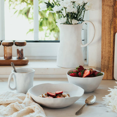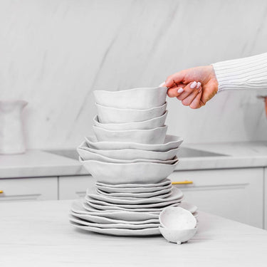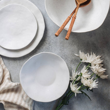 This organic white dinnerware set for four is a celebration of natural beauty, versatility, and refined elegance. Crafted with meticulous care, each piece in this collection embodies the essence of nature's purity, making it the perfect choice to enhance your meals or special moments.