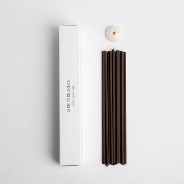 Each box of MEDITERRANEAN artisanal incense sticks contains 25 sticks and comes with a delicate ceramic incense burner , designed to hold the sticks with elegance and simplicity. This small detail ensures you can enjoy your incense in any space, with a touch of style.