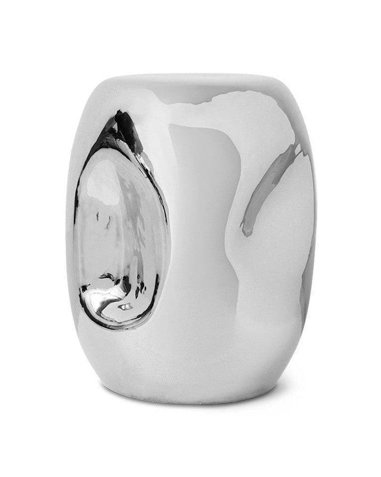 Esta mesa auxiliar cromada combina cerámica sólida con un acabado pulido que refleja la luz y aporta movimiento visual. Su forma redondeada y diámetro compacto la hacen ideal junto al sofá o como elemento decorativo en dormitorios. La cerámica 100% ofrece una superficie robusta y una presencia escultórica sin requerir montaje. El acabado cromado realza la luz ambiental y crea un contraste moderno con tejidos y maderas naturales. Con 36 cm de diámetro y 45 cm de altura, aporta apoyo estable para lámparas, libros o vasos. Su peso de 9,8 kg garantiza estabilidad y sensación de calidad al tacto. Pensada para interiores, la mesa resiste salpicaduras de agua pero no está diseñada para uso exterior prolongado. Aporta un punto focal contemporáneo a salones minimalistas, estancias vintage o espacios eclécticos. Diseñada para combinar funcionalidad y estética, facilita la organización sin restar personalidad al ambiente.