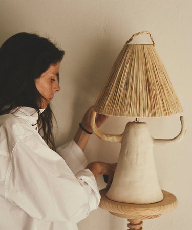 La internacionalmente reconocida ceramista Marta Bonilla, fascinada por los orígenes de la cerámica y la herencia de las civilizaciones indígenas, plasma en la Lámpara Dona una conexión profunda con estas raíces. La pieza fue primero dibujada en papel y luego modelada en barro utilizando la técnica de enrollado, lo que deja impresas las huellas del proceso artesanal en la arcilla.