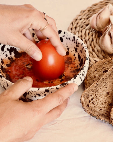 L'assiette à râper en céramique faite à la main est idéale pour râper les tomates et l'ail au petit-déjeuner, le parmesan dans les pâtes ou encore le gingembre pour une infusion. Son design sûr et convivial invite les plus petits à cuisiner, faisant de chaque instant passé en cuisine une aventure familiale amusante. Présentez vos sauces avec style, parfaites pour toute occasion. Un cadeau original qui allie beauté, fonctionnalité et charme de l'artisanat. Parfait pour les cadeaux de mariage, la Saint-Valentin, la fête des mères ou comme détail unique dans la décoration de la maison. Conseil de vente : ajoutez une vidéo de démonstration pour montrer sa polyvalence et son charme, et vos clients tomberont instantanément amoureux de la râpe ! *La couleur du cercle d'emballage varie selon le modèle. Tous nos produits sont fabriqués à la main, il peut donc y avoir de petites variations de couleurs, c'est ce qui les rend uniques. Produit fabriqué à la main en Espagne.