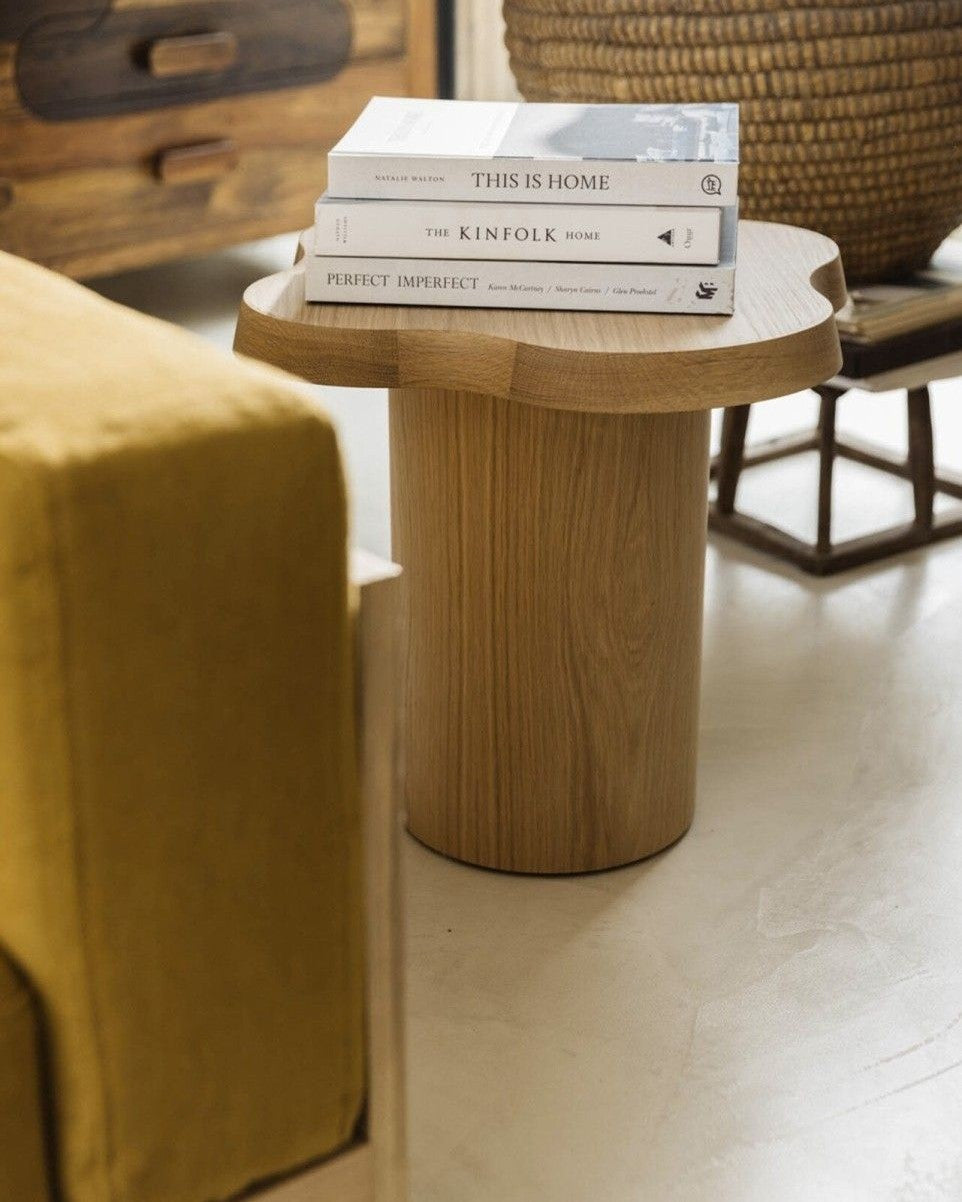 Mesa auxiliar con tablero redondo y patas macizas que aporta calidez natural a salones y rincones. Tablero chapado en fresno y patas en madera maciza con acabado roble natural y barniz acrílico UV antiamarilleo. Diseño de cantos biselados y tapa de 4 cm de grosor para una presencia sólida y tacto agradable. Fabricada en Portugal en taller con certificación FSC y CARB 2; mantenimiento sencillo con paño seco o humedecido. Entrega y montaje disponibles según destino; no incluye objetos decorativos.