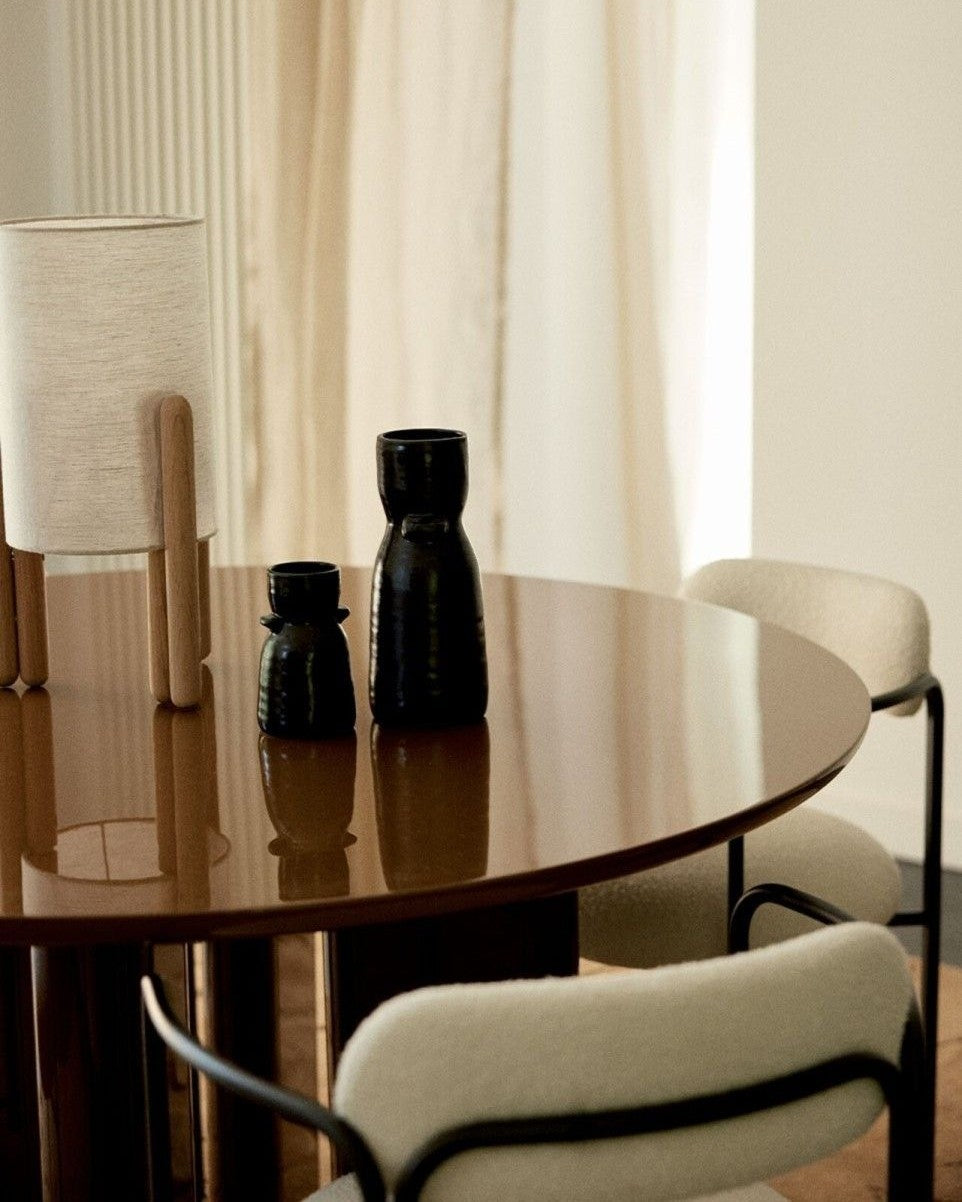 Tapa y patas lacadas en acabado caramelo con brillo piano, resistentes y de fácil mantenimiento. Diámetro de 130 cm diseñado para conversaciones y comidas en grupo en espacios contemporáneos. Estructura capaz de soportar hasta 200 kg, adecuada para uso diario y reuniones. Fabricada en Portugal en taller certificado FSC y CARB2; montaje sencillo en 15 minutos.