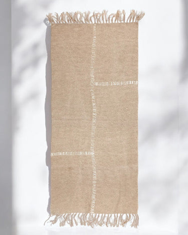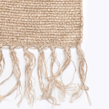 Esta alfombra de pasillo de lino 100% natural de 70x150 cm es una pieza artesanal cuidadosamente tejida a mano con 100% lino lavado a la piedra. El proceso de lavado a la piedra le confiere una suavidad inigualable y una durabilidad excepcional, manteniendo el lino en su tono natural, sin la adición de tintes artificiales. Los flecos delicadamente elaborados en sus extremos añaden un toque de elegancia y destacan el cuidado artesanal que se invierte en cada pieza.