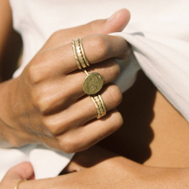Avec un design qui semble tout droit sorti d'une fouille archéologique, la bague Luna est un bijou parfaitement imparfait, ce qui en fait un véritable trésor intemporel. Sa finition rustique et authentique ajoute une touche d'histoire et de mystère à n'importe quel look. Associez-le à notre collier, bracelet et boucles d'oreilles assortis pour un look complet et cohérent.