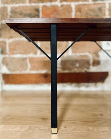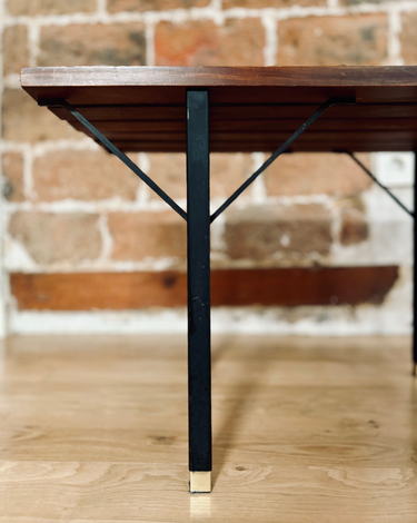 Découvrez l'élégance intemporelle de notre banc vintage du milieu du siècle au design italien , en palissandre et fer noir. Cette pièce emblématique se distingue non seulement par son style Mid-Century, mais également par sa polyvalence et ses détails uniques.