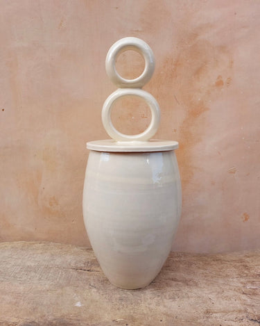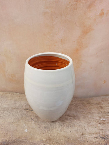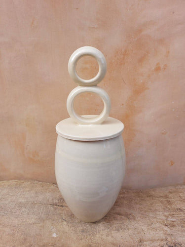Pot traditionnel en céramique, fait main. Céramique émaillée blanche. Traditionnellement, sa fonction était de conserver les aliments, comme la farine, les légumineuses, etc... Les tons de couleur varient légèrement en raison du fait que chaque pièce est trempée à la main. Comment cela a été fait à l’origine. Cela rend chaque pièce unique. Nous utilisons des matières premières écologiques et durables, avec lesquelles nous garantissons le respect de l'environnement. Les expéditions sont effectuées avec du carton réutilisé, provenant d'une autre entreprise locale. Mesures: 14X14X32H cm Poids : 1275g