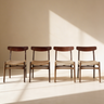 Este conjunto de cuatro sillas CH23, diseñado por Hans J. Wegner para Carl Hansen & Søn, es una de esas piezas que definen un comedor sin esfuerzo. Líneas limpias, proporciones perfectas y una calidez natural que solo consiguen los buenos materiales y el diseño honesto.